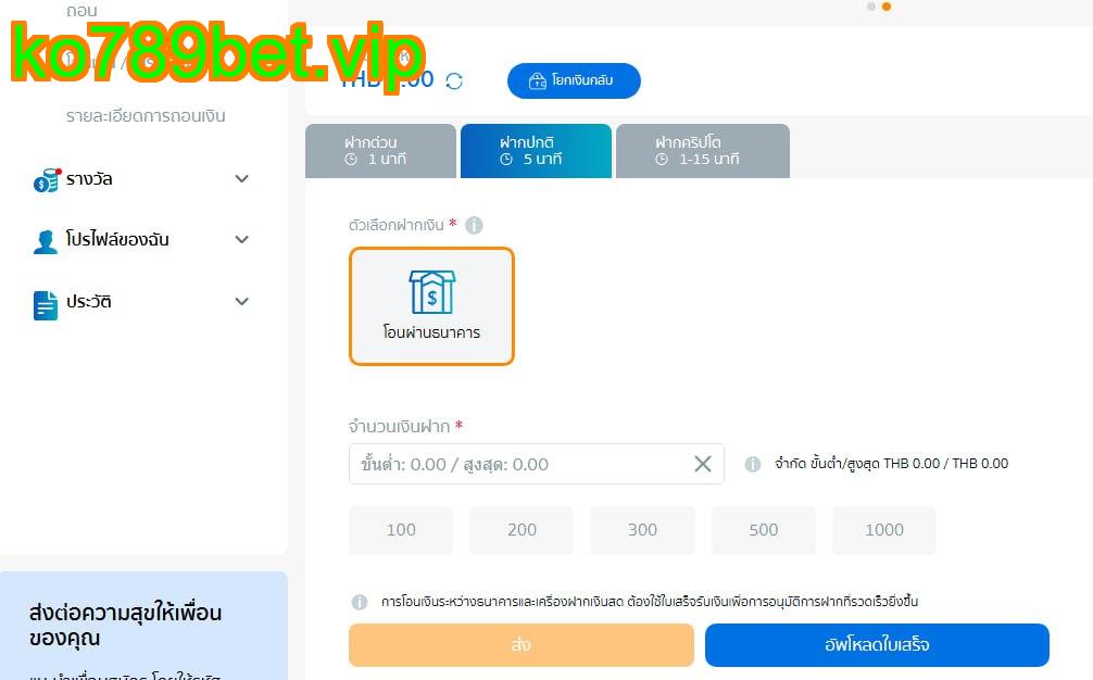 ฝากเงินเข้า KO789BET ด้วยวิธีง่ายๆ มากมาย
